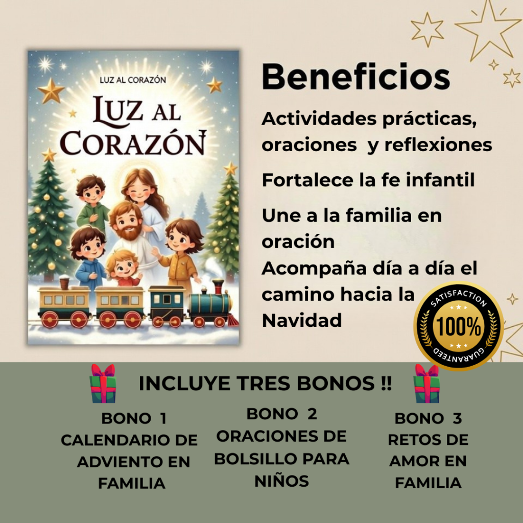 No necesitas buscar ideas ni diseñar materiales: Luz al Corazón está listo para descargar e imprimir. Esto significa menos preparación y más tiempo compartido en familia, viviendo un Adviento profundo y con propósito.