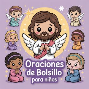 Un set de tarjetas tiernas y prácticas con oraciones breves que los niños pueden llevar en su mochila, usar en su rincón de oración o compartir con su familia.